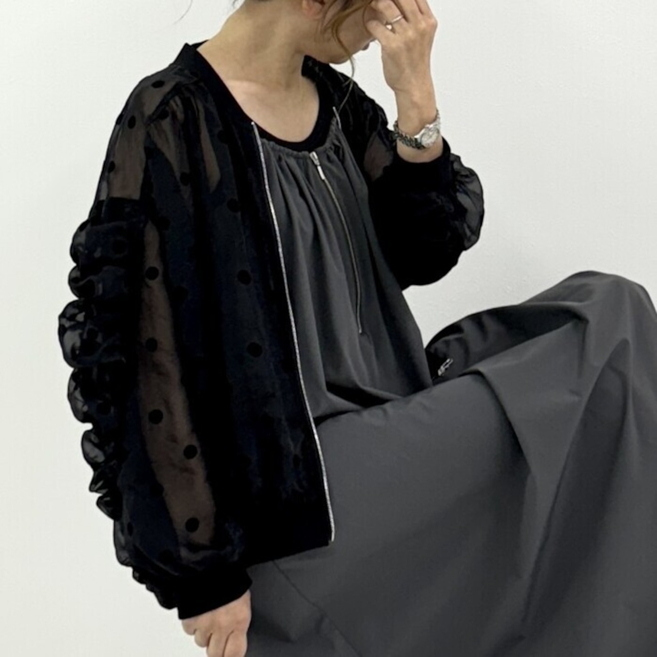 シアーブルゾン レディース アウター ドット柄 透け感 軽量ブルゾン ギャザー袖 ライトアウター 25055