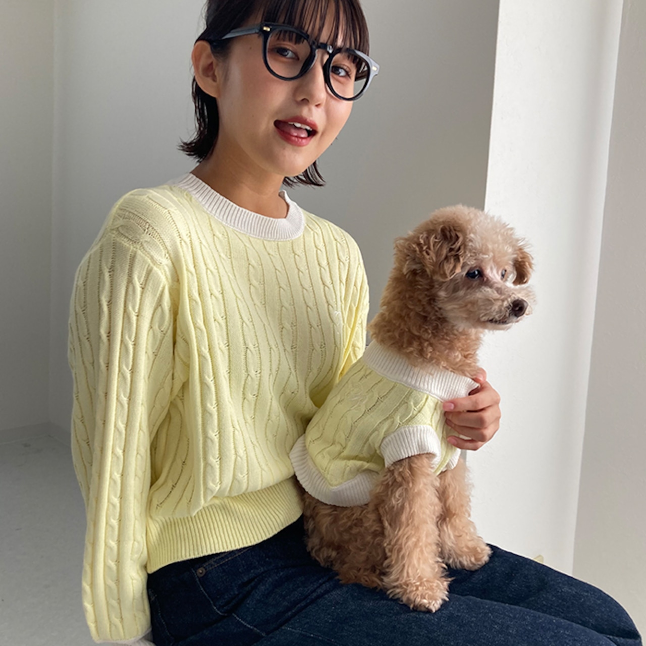 犬 服 ペットウェア ニット ケーブル編みニット ペット 小型犬 プードル マルチーズ チワワ ポメラニアン ヨークシャーテリア パピヨン 飼い主 お揃い リンクコーデ ロゴ 刺繍 バイカラー
