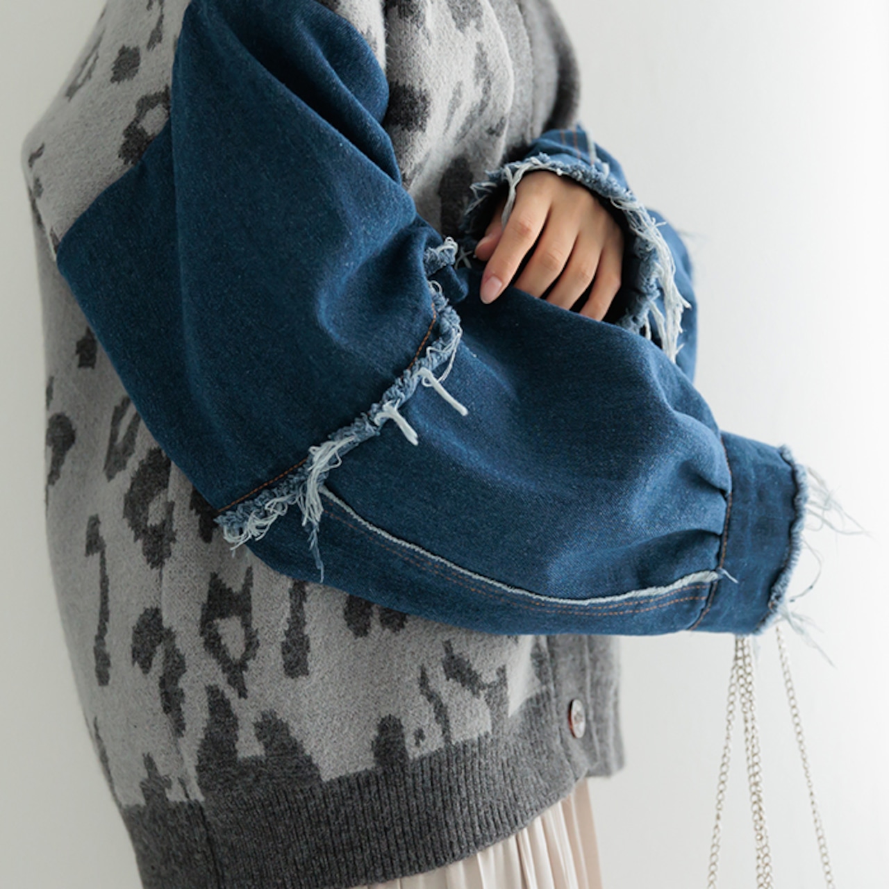 ニットとデニムがドッキングされた個性的なカーディガン♡