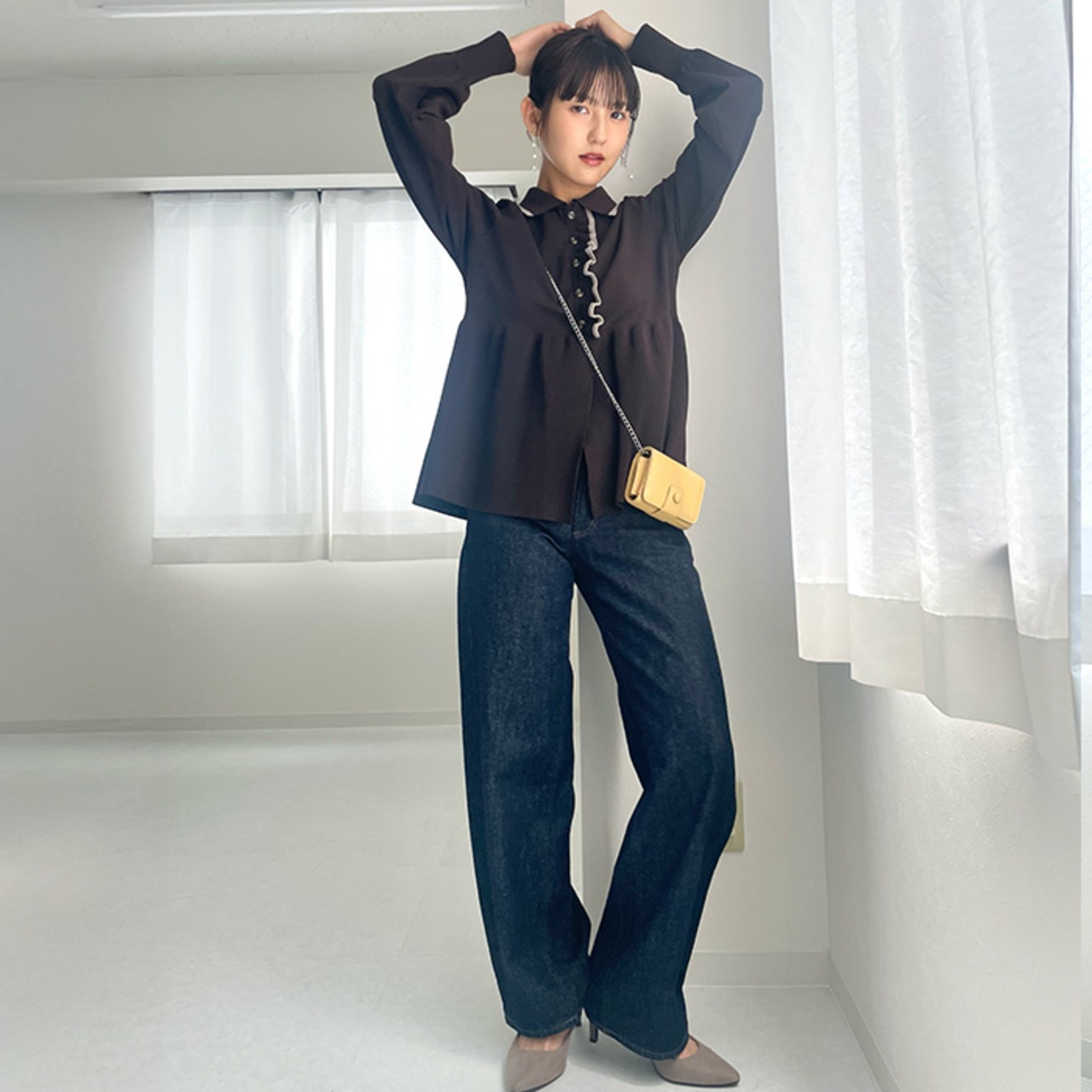 【2025AW新作】ニットカーディガン レディース トップス 襟付き フリルニットカーディガン ペプラム 25621
