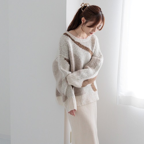柄ニットにチャレンジしてみたい方にも取り入れやすいニットです。