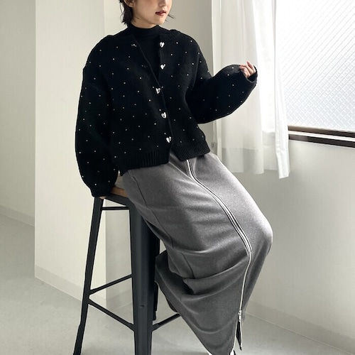 【新色追加】ニットカーディガン レディース トップス 前後2WAY ハート柄ニット 厚手 クルーネックカーディガン 25627