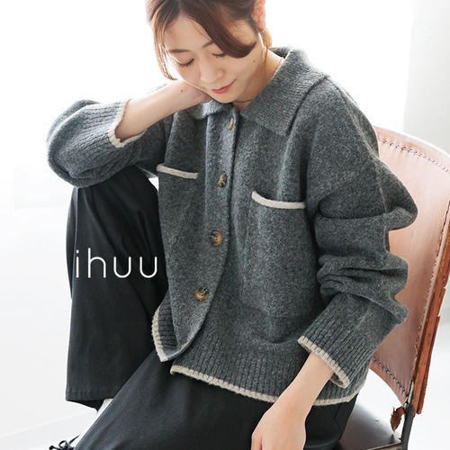 ニットカーディガン レディース トップス ジャケット 羽織 長袖 無地 ライン入り ポケット アウター バイカラー 襟付き きれいめ カジュアル 高見え 肌触り 定番デザイン 上質 体型カバー 着やせ 着回し 大人の定番 華奢見え ママコーデ
