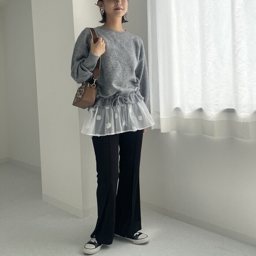 ニット レディース トップス クルーネック 無地 長袖 10分袖 レイヤード スカート チュニック シアー ドット フェミニン カジュアル 高見え 肌触り 定番デザイン 上質 体型カバー 着やせ 着回し 大人の定番 華奢見え ママコーデ マタニティ