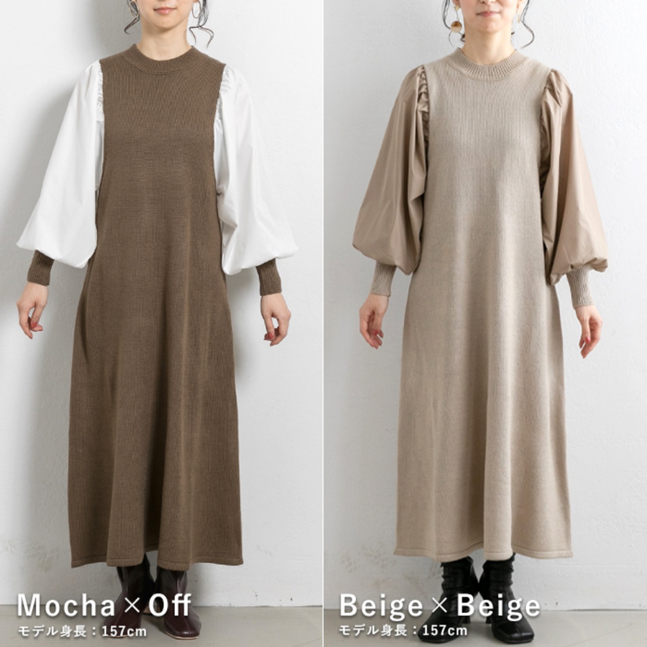 パワーショルダー ニット ワンピース 長袖 10分袖 ボリューム袖 無地 秋 冬 春 大人カジュアル 高見え 肌触り 定番デザイン 上質 体型カバー 着やせ 着回し 大人の定番 華奢見え