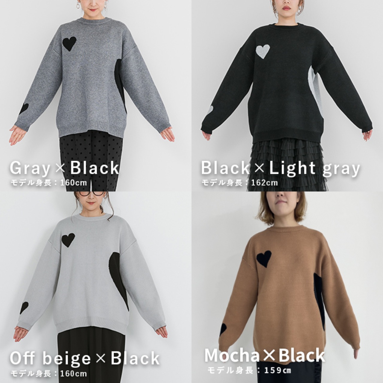 ニット レディース トップス ハート柄 もっちりニット 厚手 長袖 クルーネック セーター 24757
