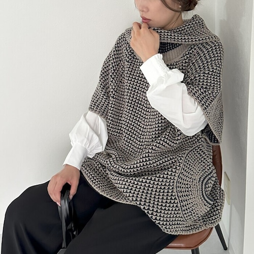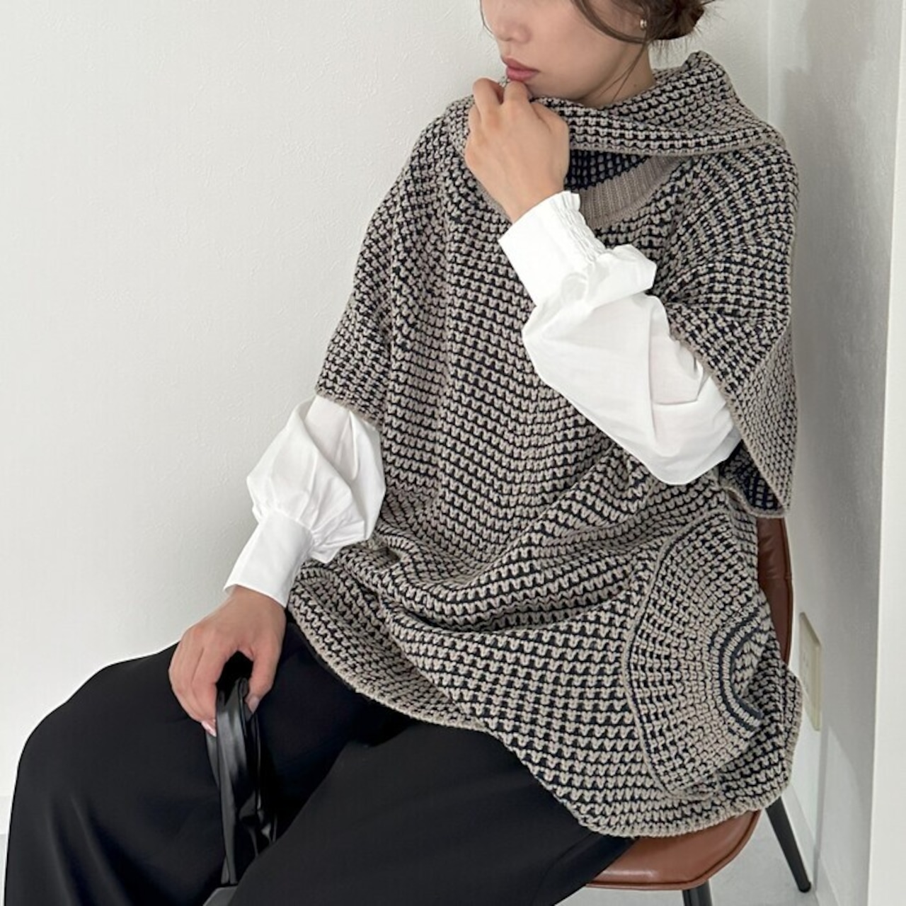ニット 長袖 レディース トップス チュニック Aライン ワッフル編み オフタートル バイカラー ポケット付き 体型カバー 大人カジュアル きれいめ 高見え 肌触り 定番デザイン 上質 着やせ 着回し 大人の定番 華奢見え