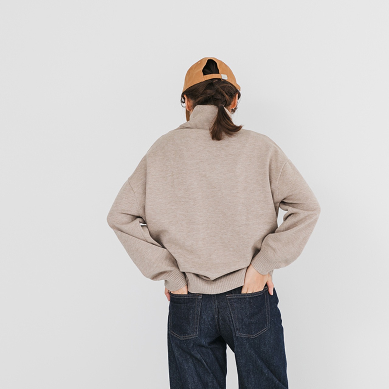 ニット レディース トップス 無地 タートルネックニット くしゅ襟 チュニック丈 オーバーサイズ 24779