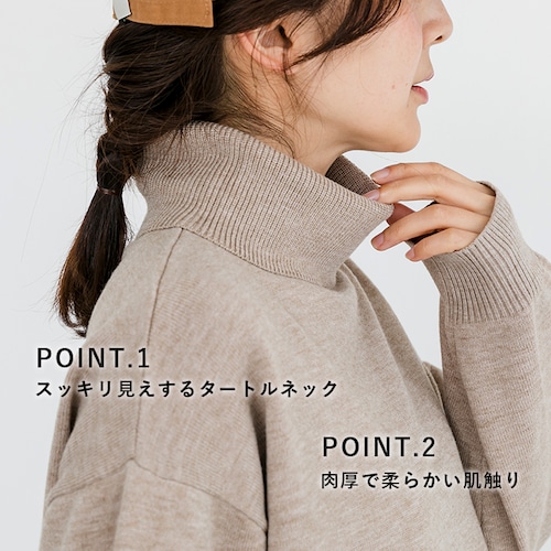 ニット 長袖 セーター レディース タートルネック 無地 ミドル丈 体型カバー 大人カジュアル 肌触り 定番デザイン 上質 着やせ 着回し 大人の定番 華奢見え