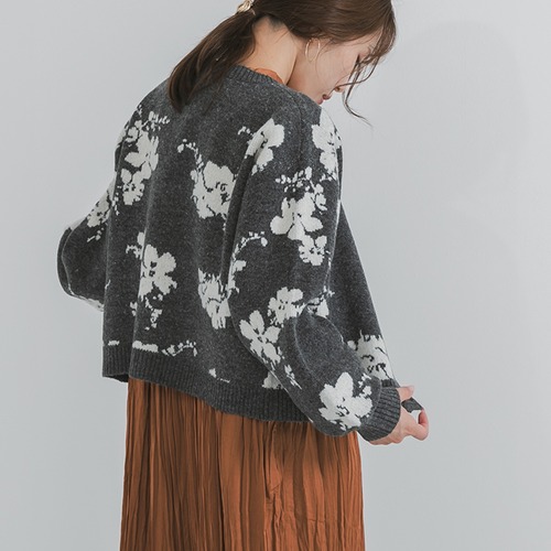 花柄のデザインが目を惹くニットカーディガン♪