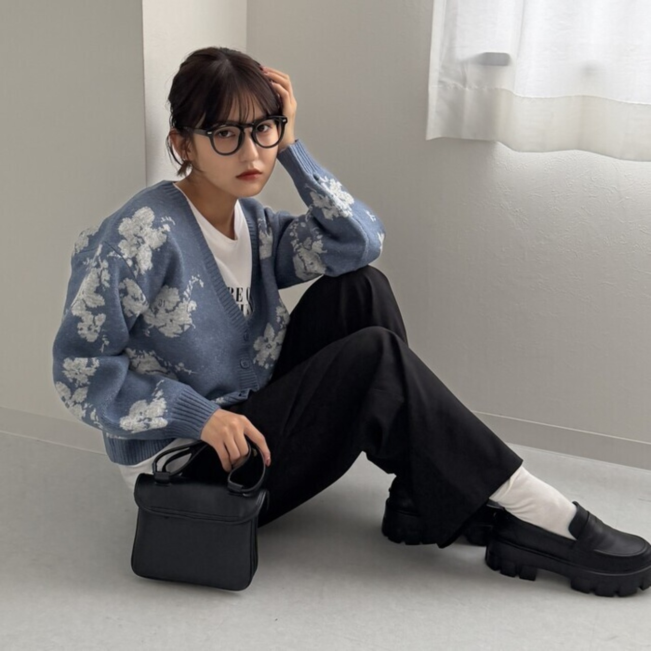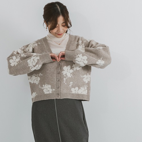 洗える ふんわり 花柄 ニットカーディガン 24808